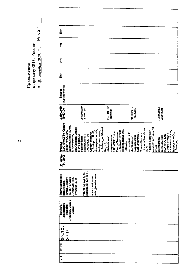 ПРИКАЗ ФТС РФ от 30.12.2010 N 2763