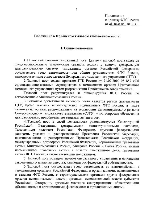 "ОБ УТВЕРЖДЕНИИ ПОЛОЖЕНИЯ О ПРИОКСКОМ ТЫЛОВОМ ТАМОЖЕННОМ ПОСТЕ"