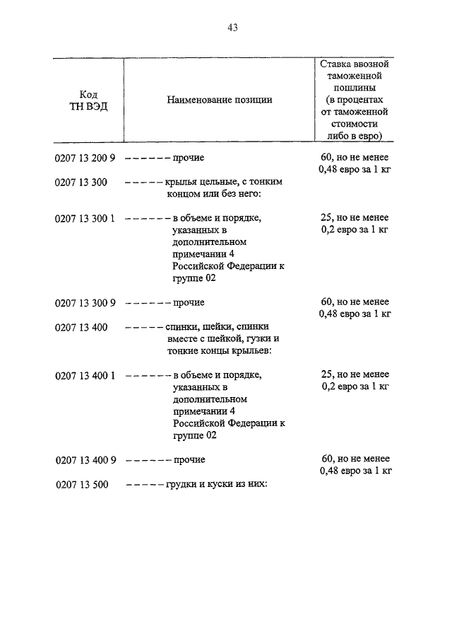 "О ВНЕСЕНИИ ИЗМЕНЕНИЙ В ТН ВЭД РОССИИ И О СТАВКАХ ВВОЗНЫХ ТАМОЖЕННЫХ ПОШЛИН НА МЯСО ДОМАШНЕЙ ПТИЦЫ"