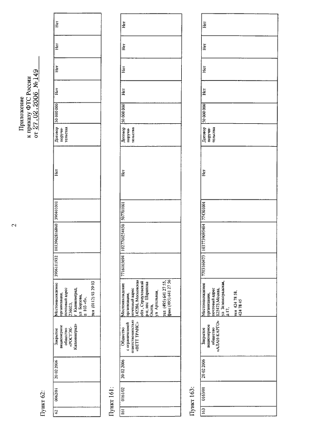 ПРИКАЗ ФТС РФ от 27.02.2006 N 149