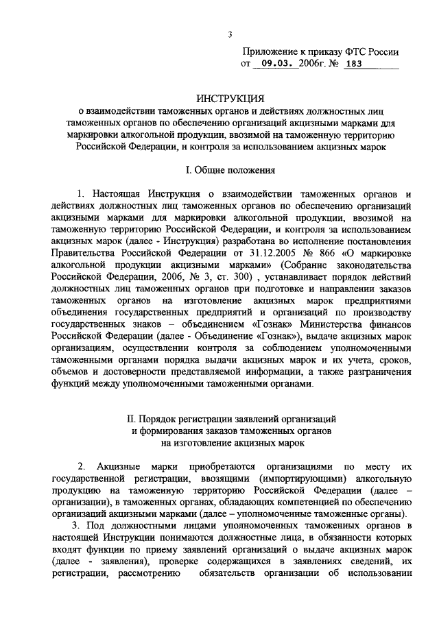 ПРИКАЗ ФТС РФ от 09.03.2006 N 183
