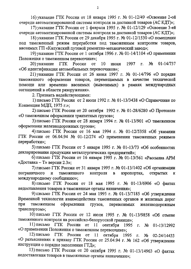 "О ПРИЗНАНИИ УТРАТИВШИМИ СИЛУ И НЕДЕЙСТВУЮЩИМИ ПРАВОВЫХ АКТОВ ГТК РОССИИ"