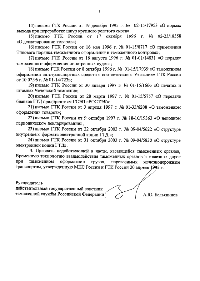 "О ПРИЗНАНИИ УТРАТИВШИМИ СИЛУ И НЕДЕЙСТВУЮЩИМИ ПРАВОВЫХ АКТОВ ГТК РОССИИ"