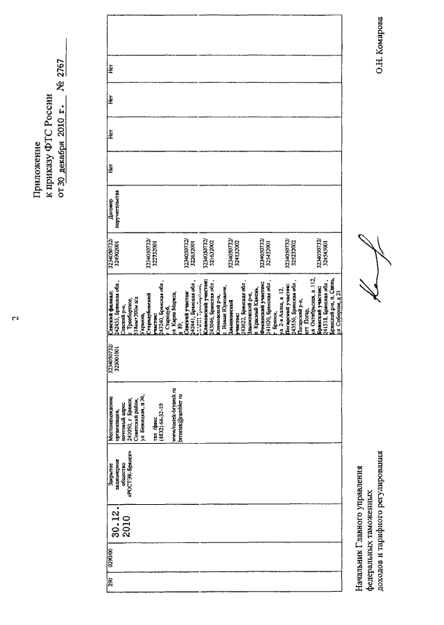 ПРИКАЗ ФТС РФ от 30.12.2010 N 2767