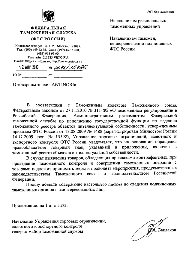ПИСЬМО ФТС РФ от 12.04.2013 N 14-42/15796