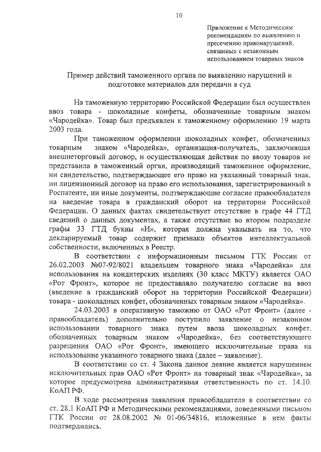 (вместе с "МЕТОДИЧЕСКИМИ РЕКОМЕНДАЦИЯМИ ПО ВЫЯВЛЕНИЮ И ПРЕСЕЧЕНИЮ ПРАВОНАРУШЕНИЙ, СВЯЗАННЫХ С НЕЗАКОННЫМ ИСПОЛЬЗОВАНИЕМ ТОВАРНЫХ ЗНАКОВ")