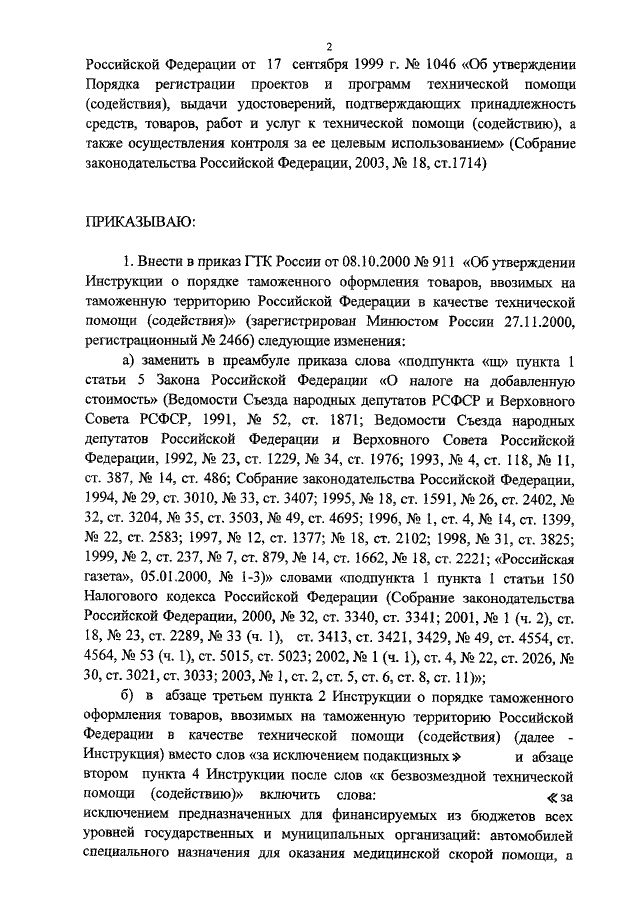 "О ВНЕСЕНИИ ИЗМЕНЕНИЯ В ПРИКАЗ ГТК РОССИИ ОТ 08.10.2000 N 911"