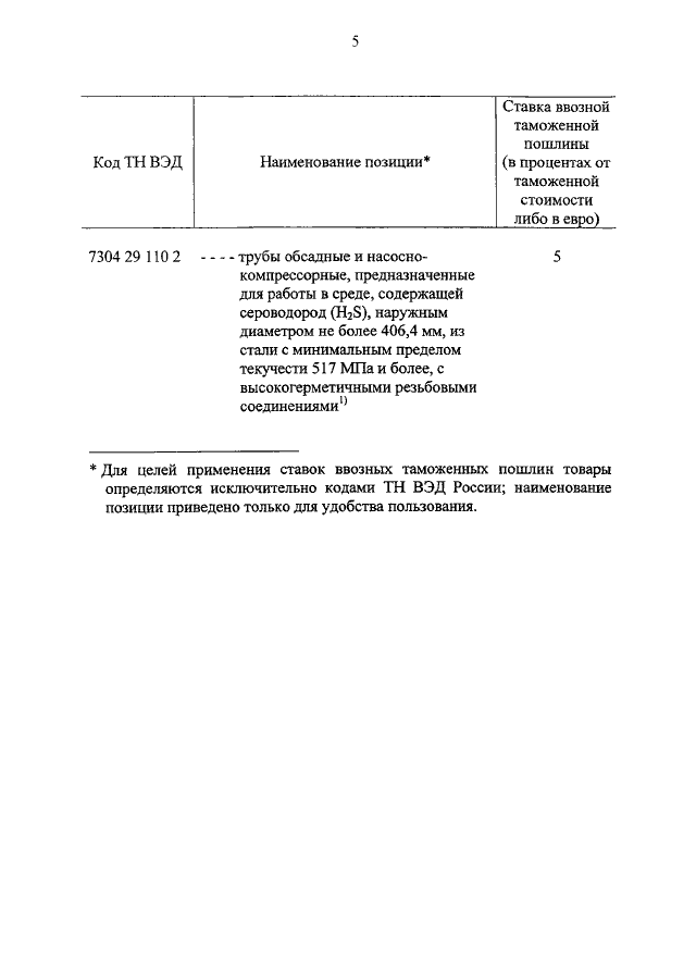 "О ВНЕСЕНИИ ИЗМЕНЕНИЙ В ТН ВЭД РОССИИ И О СТАВКАХ ВВОЗНЫХ ТАМОЖЕННЫХ ПОШЛИН НА БУРИЛЬНЫЕ, ОБСАДНЫЕ И НАСОСНО - КОМПРЕССОРНЫЕ ТРУБЫ"