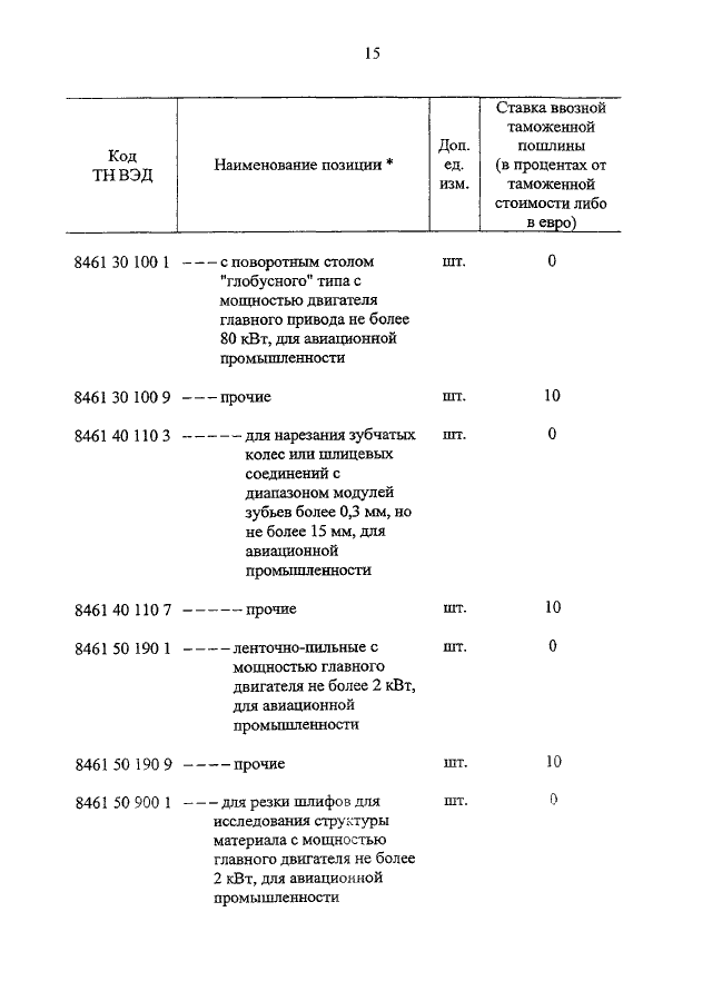"О ВНЕСЕНИИ ИЗМЕНЕНИЙ В ТН ВЭД РОССИИ И О ВРЕМЕННЫХ СТАВКАХ ВВОЗНЫХ ТАМОЖЕННЫХ ПОШЛИН НА ТЕХНОЛОГИЧЕСКОЕ ОБОРУДОВАНИЕ ДЛЯ АВИАЦИОННОЙ ПРОМЫШЛЕННОСТИ"