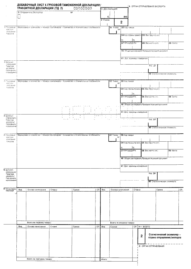 "ОБ УТВЕРЖДЕНИИ НОВЫХ ФОРМ КОМПЛЕКТОВ БЛАНКОВ ТАМОЖЕННОЙ ДЕКЛАРАЦИИ И ТРАНЗИТНОЙ ДЕКЛАРАЦИИ"