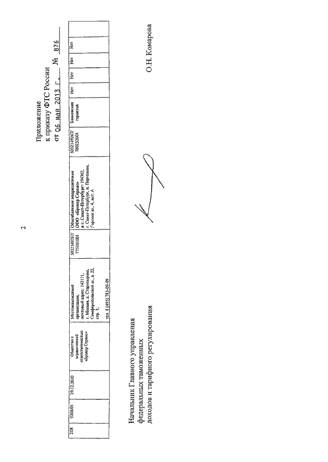 ПРИКАЗ ФТС РФ от 06.05.2013 N 876