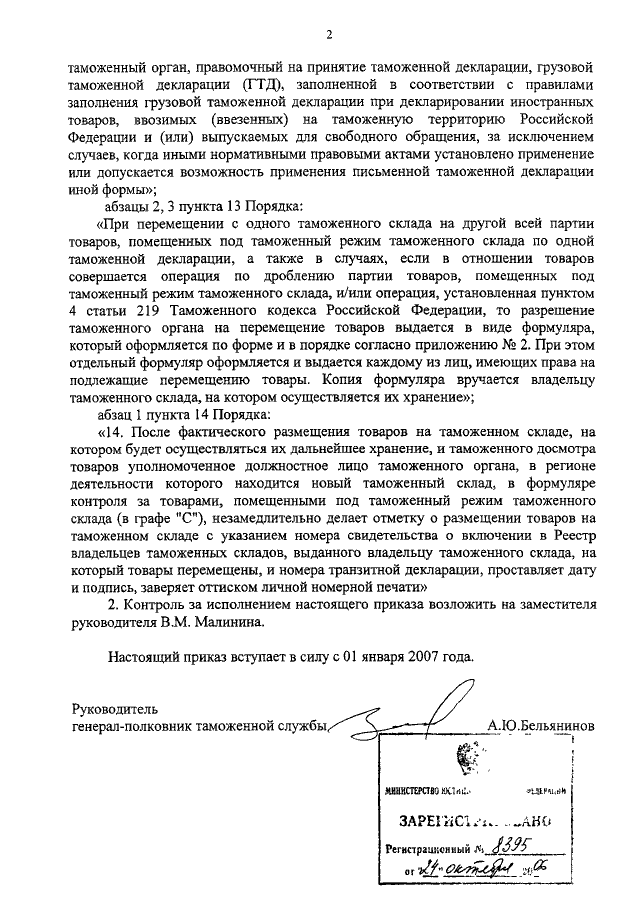 ПРИКАЗ ФТС РФ от 08.09.2006 N 862 "О ВНЕСЕНИИ ИЗМЕНЕНИЙ В ПОРЯДОК СОВЕРШЕНИЯ ОТДЕЛЬНЫХ ТАМОЖЕННЫХ