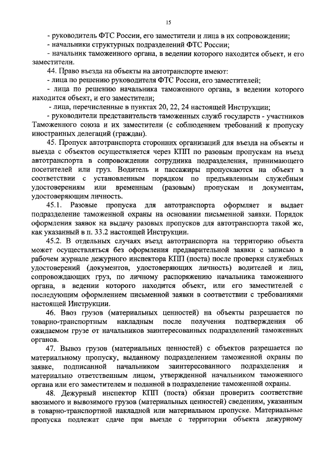 "ОБ УТВЕРЖДЕНИИ ИНСТРУКЦИИ ПО ОРГАНИЗАЦИИ ПРОПУСКНОГО И ВНУТРИОБЪЕКТОВОГО РЕЖИМОВ НА ОБЪЕКТАХ ТАМОЖЕННЫХ ОРГАНОВ РОССИЙСКОЙ ФЕДЕРАЦИИ"