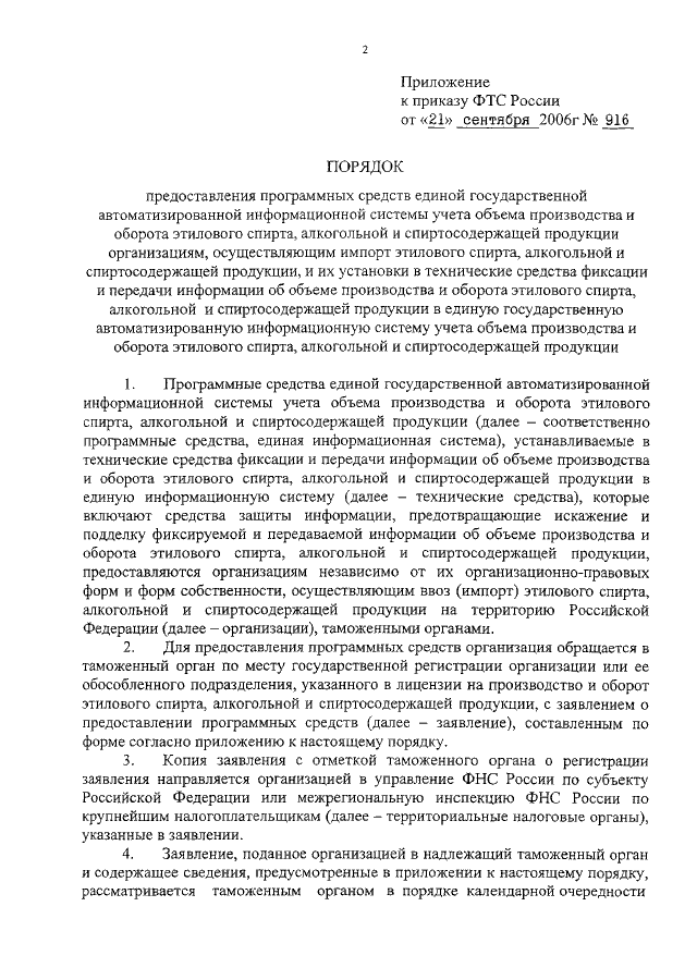 ПРИКАЗ ФТС РФ от 21.09.2006 N 916