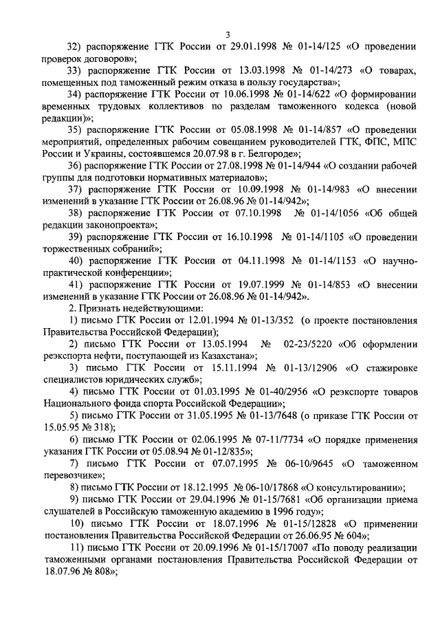 "О ПРИЗНАНИИ УТРАТИВШИМИ СИЛУ НЕКОТОРЫХ ПРАВОВЫХ АКТОВ ГТК РОССИИ"