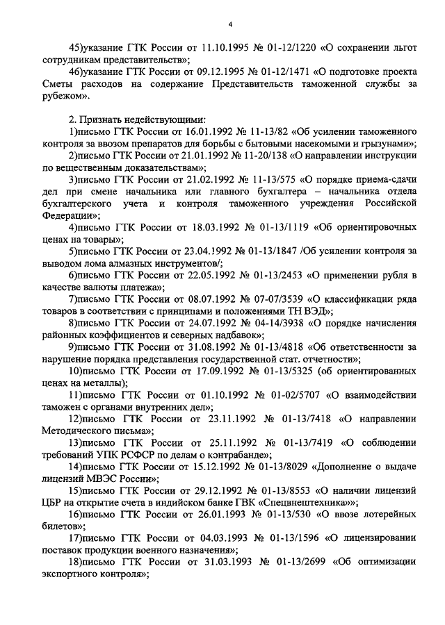 "О ПРИЗНАНИИ УТРАТИВШИМИ СИЛУ НЕКОТОРЫХ ПРАВОВЫХ АКТОВ ГТК РОССИИ ПО ТАМОЖЕННЫМ ВОПРОСАМ"