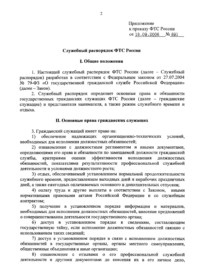 ПРИКАЗ ФТС РФ от 18.09.2006 N 891