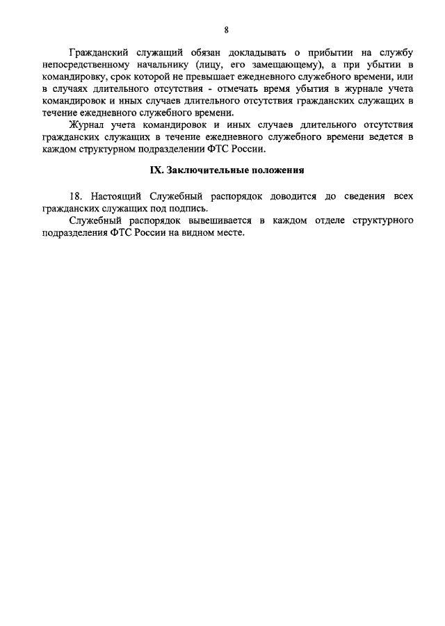 "ОБ УТВЕРЖДЕНИИ СЛУЖЕБНОГО РАСПОРЯДКА ФТС РОССИИ"