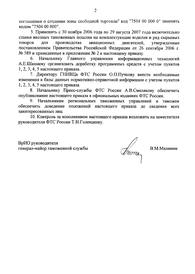 ПРИКАЗ ФТС РФ от 15.11.2006 N 1173