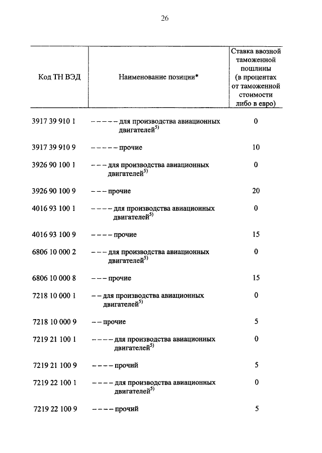 "О ВНЕСЕНИИ ИЗМЕНЕНИЙ В ТН ВЭД РОССИИ И О ВРЕМЕННЫХ СТАВКАХ ВВОЗНЫХ ТАМОЖЕННЫХ ПОШЛИН НА КОМПЛЕКТУЮЩИЕ ИЗДЕЛИЯ И РЯДА СЫРЬЕВЫХ ТОВАРОВ ДЛЯ ПРОИЗВОДСТВА АВИАЦИОННЫХ ДВИГАТЕЛЕЙ"