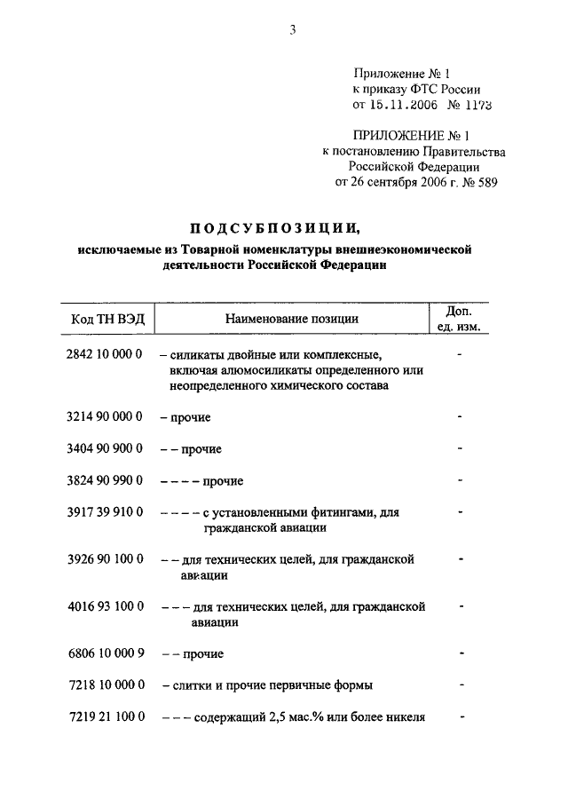 ПРИКАЗ ФТС РФ от 15.11.2006 N 1173