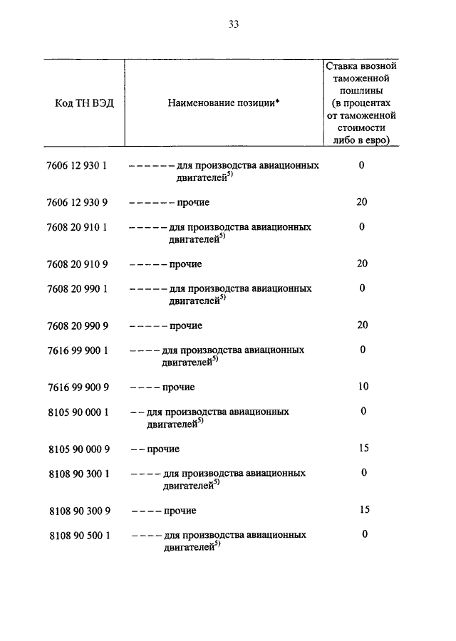 "О ВНЕСЕНИИ ИЗМЕНЕНИЙ В ТН ВЭД РОССИИ И О ВРЕМЕННЫХ СТАВКАХ ВВОЗНЫХ ТАМОЖЕННЫХ ПОШЛИН НА КОМПЛЕКТУЮЩИЕ ИЗДЕЛИЯ И РЯДА СЫРЬЕВЫХ ТОВАРОВ ДЛЯ ПРОИЗВОДСТВА АВИАЦИОННЫХ ДВИГАТЕЛЕЙ"