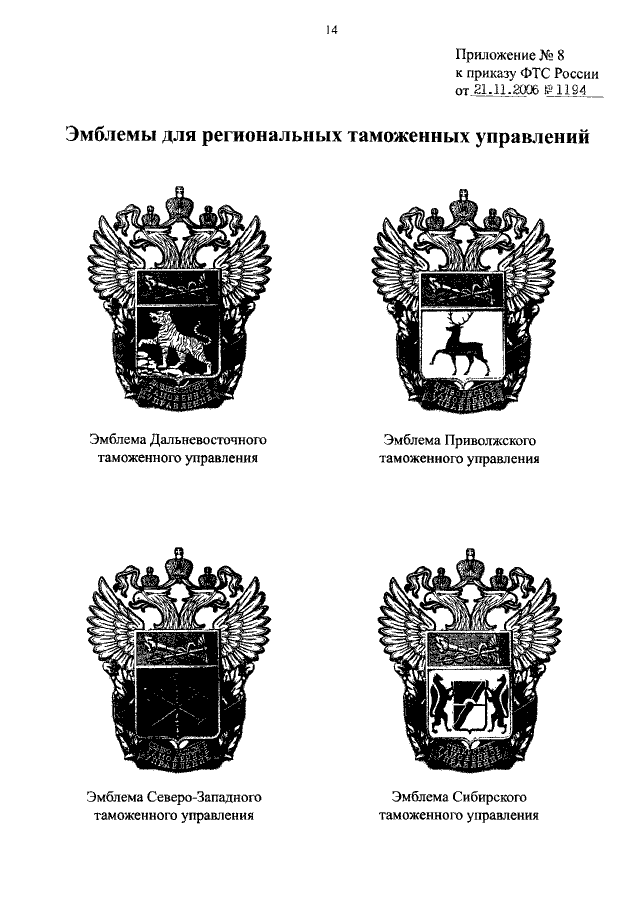 "ОБ УЧРЕЖДЕНИИ ГЕРАЛЬДИЧЕСКИХ ЗНАКОВ - ЭМБЛЕМ И УТВЕРЖДЕНИИ РИСУНКОВ, ОПИСАНИЙ ЭМБЛЕМ ДЛЯ СТРУКТУРНЫХ ПОДРАЗДЕЛЕНИЙ ФТС РОССИИ, РЕГИОНАЛЬНЫХ ТАМОЖЕННЫХ УПРАВЛЕНИЙ И ПОДЧИНЕННЫХ ИМ ТАМОЖЕН, ТАМОЖЕН, НЕПОСРЕДСТВЕННО ПОДЧИНЕННЫХ ФТС РОССИИ, И УЧРЕЖДЕНИЙ, НАХОДЯЩИХСЯ В ВЕДЕНИИ ФТС РОССИИ"