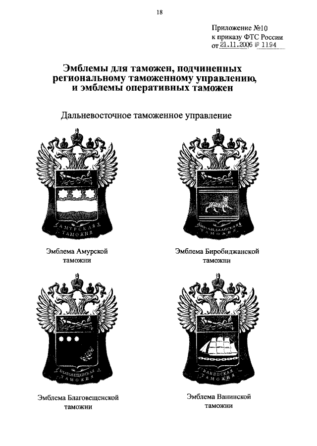 ПРИКАЗ ФТС РФ от 21.11.2006 N 1194