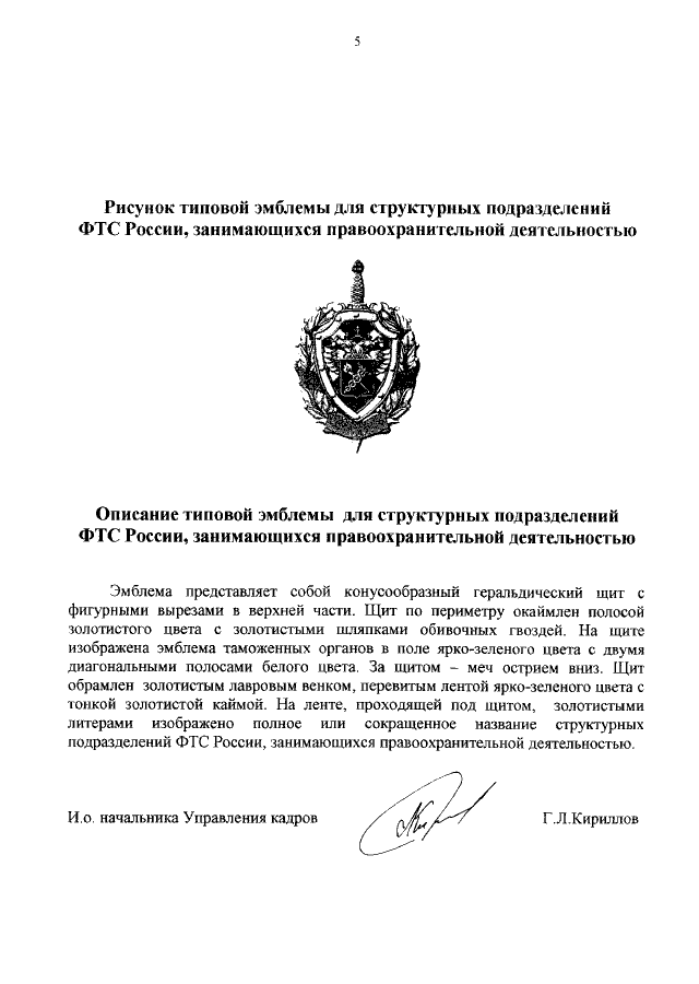 "ОБ УЧРЕЖДЕНИИ ГЕРАЛЬДИЧЕСКИХ ЗНАКОВ - ЭМБЛЕМ И УТВЕРЖДЕНИИ РИСУНКОВ, ОПИСАНИЙ ЭМБЛЕМ ДЛЯ СТРУКТУРНЫХ ПОДРАЗДЕЛЕНИЙ ФТС РОССИИ, РЕГИОНАЛЬНЫХ ТАМОЖЕННЫХ УПРАВЛЕНИЙ И ПОДЧИНЕННЫХ ИМ ТАМОЖЕН, ТАМОЖЕН, НЕПОСРЕДСТВЕННО ПОДЧИНЕННЫХ ФТС РОССИИ, И УЧРЕЖДЕНИЙ, НАХОДЯЩИХСЯ В ВЕДЕНИИ ФТС РОССИИ"