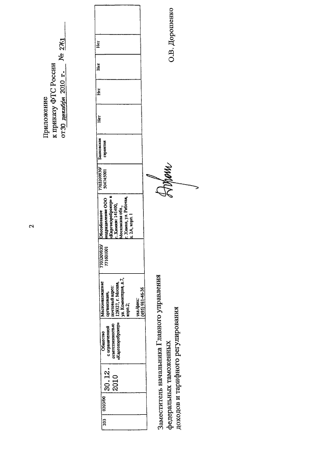 ПРИКАЗ ФТС РФ от 30.12.2010 N 2761