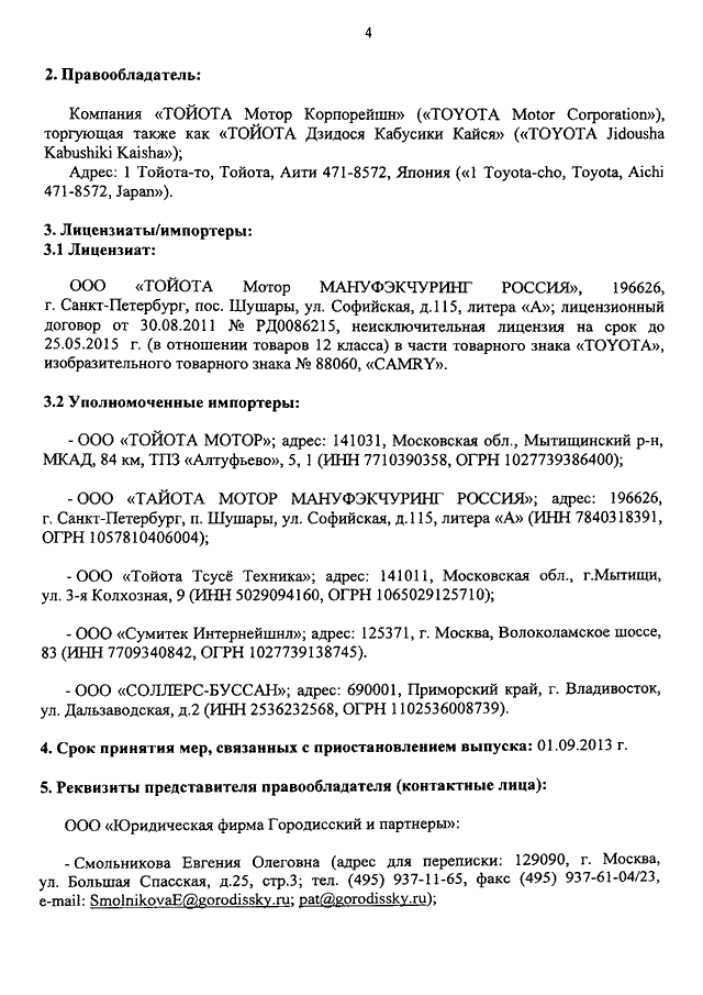 "О ТОВАРНЫХ ЗНАКАХ КОМПАНИИ "TOYOTA MOTOR CORPORATION"