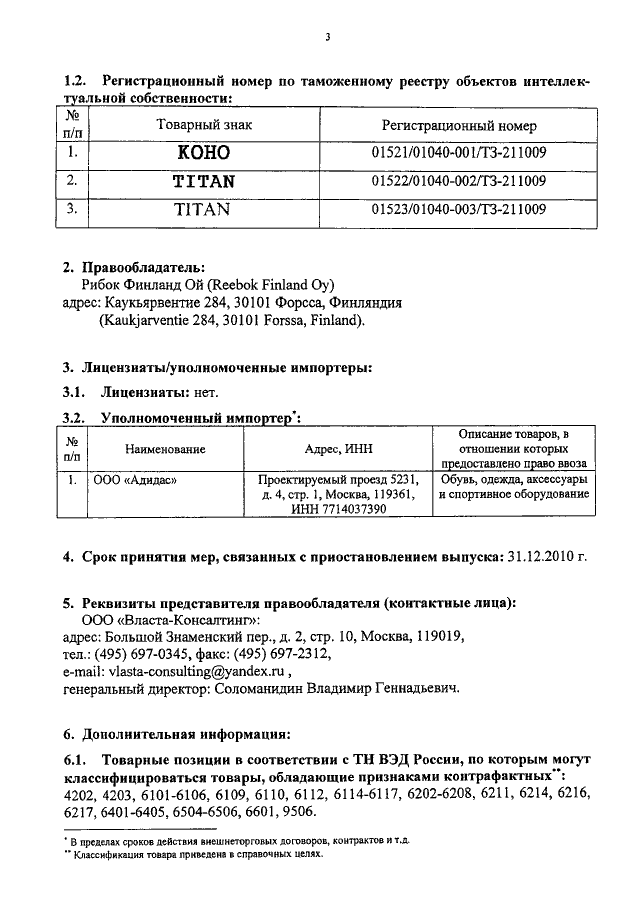 "О ТОВАРНЫХ ЗНАКАХ КОМПАНИИ "РИБОК ФИНЛАНД ОЙ"