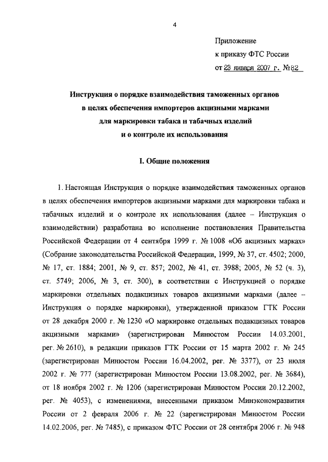 ПРИКАЗ ФТС РФ от 23.01.2007 N 82