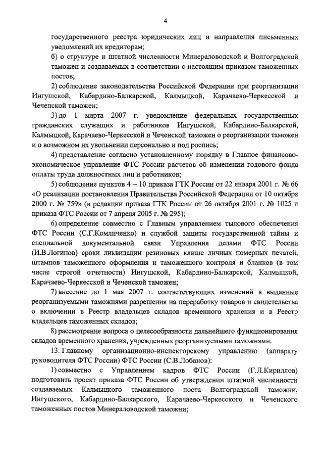 "О РЕОРГАНИЗАЦИИ ТАМОЖЕН, РАСПОЛОЖЕННЫХ В ЮЖНОМ ФЕДЕРАЛЬНОМ ОКРУГЕ"