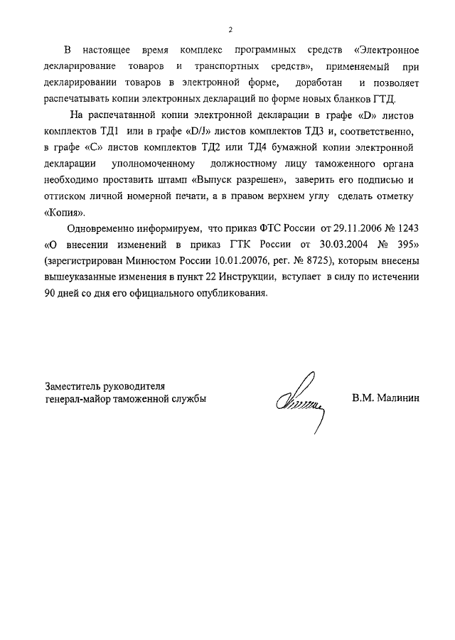 "ОБ ОТМЕТКАХ ТАМОЖЕННЫХ ОРГАНОВ, ПРОСТАВЛЯЕМЫХ НА БУМАЖНЫХ КОПИЯХ ЭЛЕКТРОННЫХ ГТД"