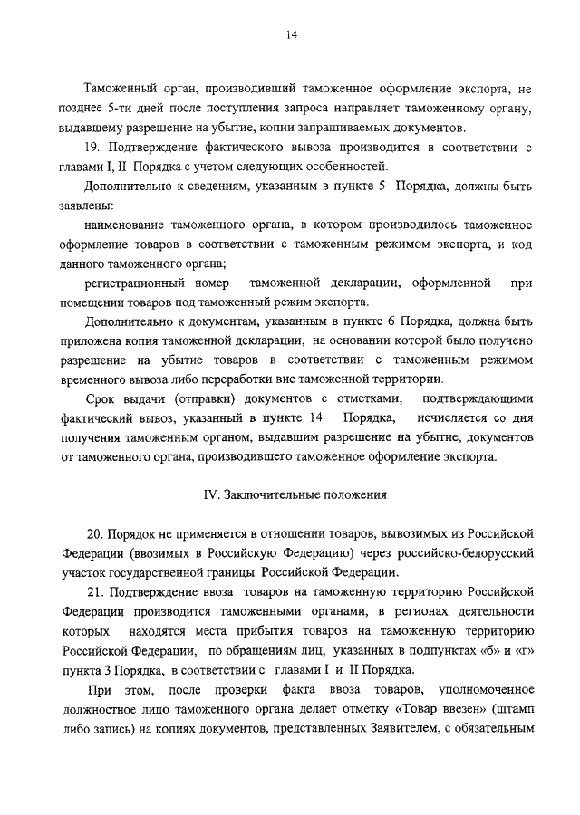 "ОБ УТВЕРЖДЕНИИ ПОРЯДКА ДЕЙСТВИЙ ДОЛЖНОСТНЫХ ЛИЦ ТАМОЖЕННЫХ ОРГАНОВ ПРИ ПОДТВЕРЖДЕНИИ ФАКТИЧЕСКОГО ВЫВОЗА ТОВАРОВ С ТАМОЖЕННОЙ ТЕРРИТОРИИ РОССИЙСКОЙ ФЕДЕРАЦИИ (ВВОЗА ТОВАРОВ НА ТАМОЖЕННУЮ ТЕРРИТОРИЮ РОССИЙСКОЙ ФЕДЕРАЦИИ)"