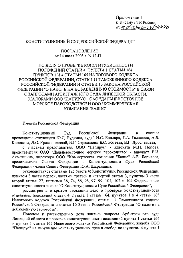 "О ПОСТАНОВЛЕНИИ КОНСТИТУЦИОННОГО СУДА РОССИЙСКОЙ ФЕДЕРАЦИИ ОТ 14.07.2003 N 12-П"