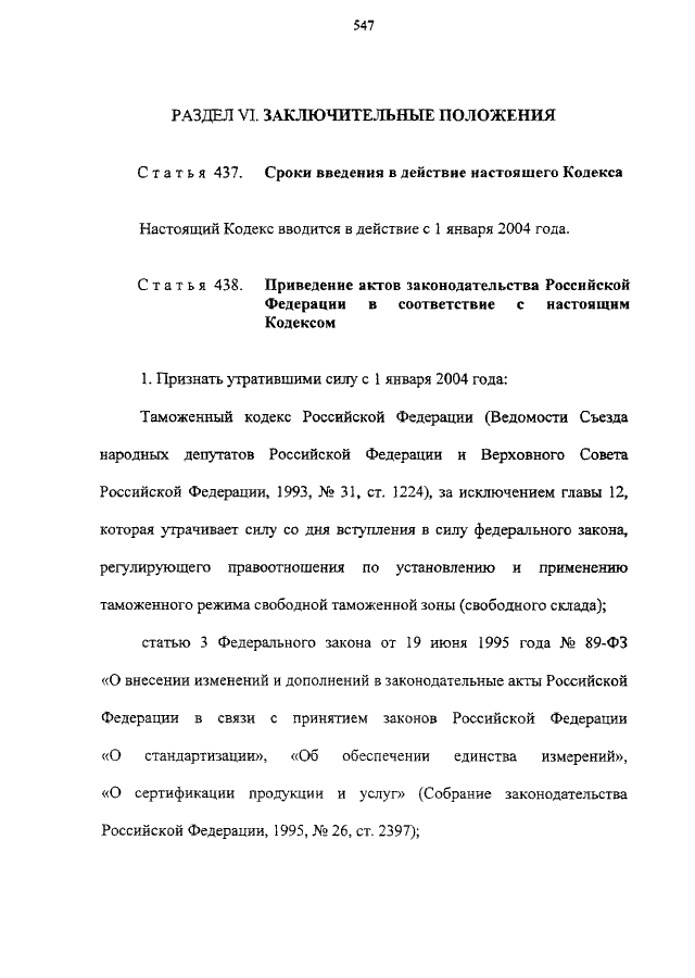 "ТАМОЖЕННЫЙ КОДЕКС РОССИЙСКОЙ ФЕДЕРАЦИИ"