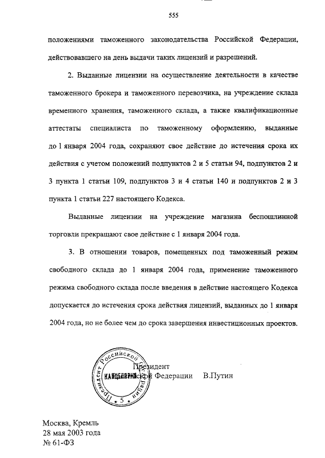 от 28.05.2003 N 61-ФЗ (принят ГД ФС РФ 25.04.2003)