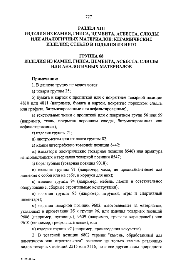 (утв. Постановлением Правительства РФ от 30.11.2001 N 830) (разделы XI - XXI, группы 50 - 97)