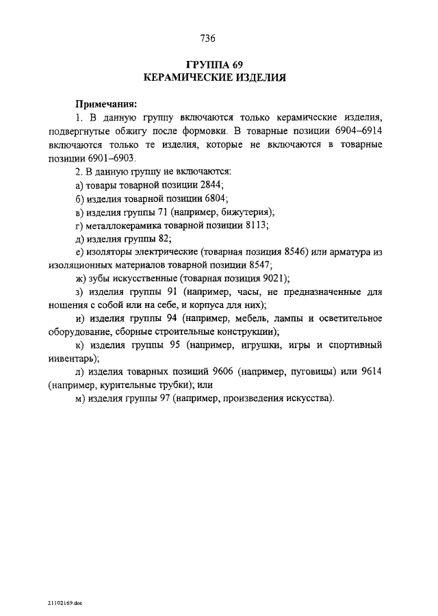 (утв. Постановлением Правительства РФ от 30.11.2001 N 830) (разделы XI - XXI, группы 50 - 97)