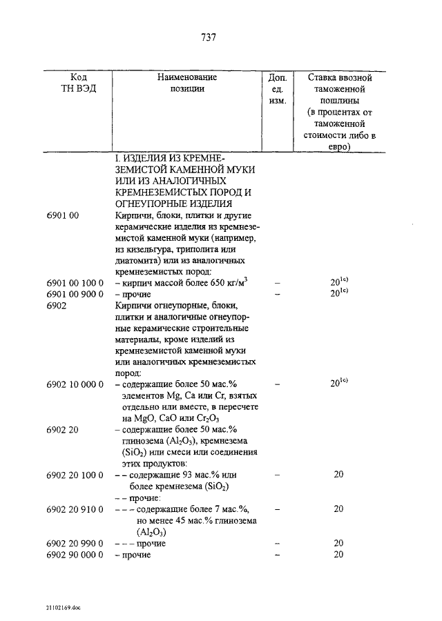 (утв. Постановлением Правительства РФ от 30.11.2001 N 830) (разделы XI - XXI, группы 50 - 97)