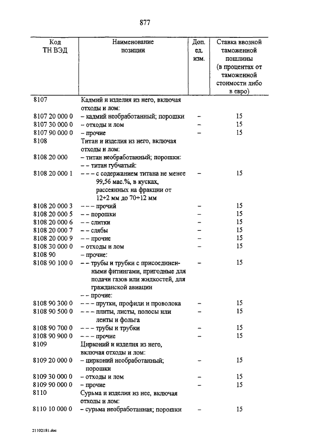 (утв. Постановлением Правительства РФ от 30.11.2001 N 830) (разделы XI - XXI, группы 50 - 97)