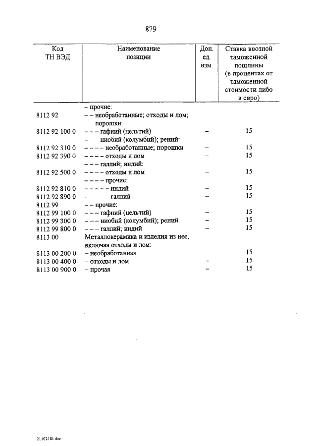 (утв. Постановлением Правительства РФ от 30.11.2001 N 830) (разделы XI - XXI, группы 50 - 97)