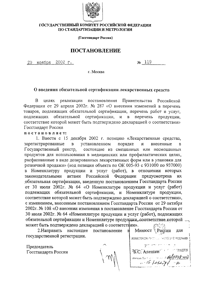ПОСТАНОВЛЕНИЕ Госстандарта РФ от 29.11.2002 N 119
