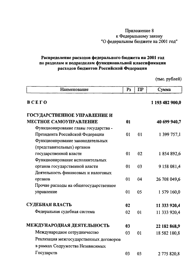 "О ФЕДЕРАЛЬНОМ БЮДЖЕТЕ НА 2001 ГОД"