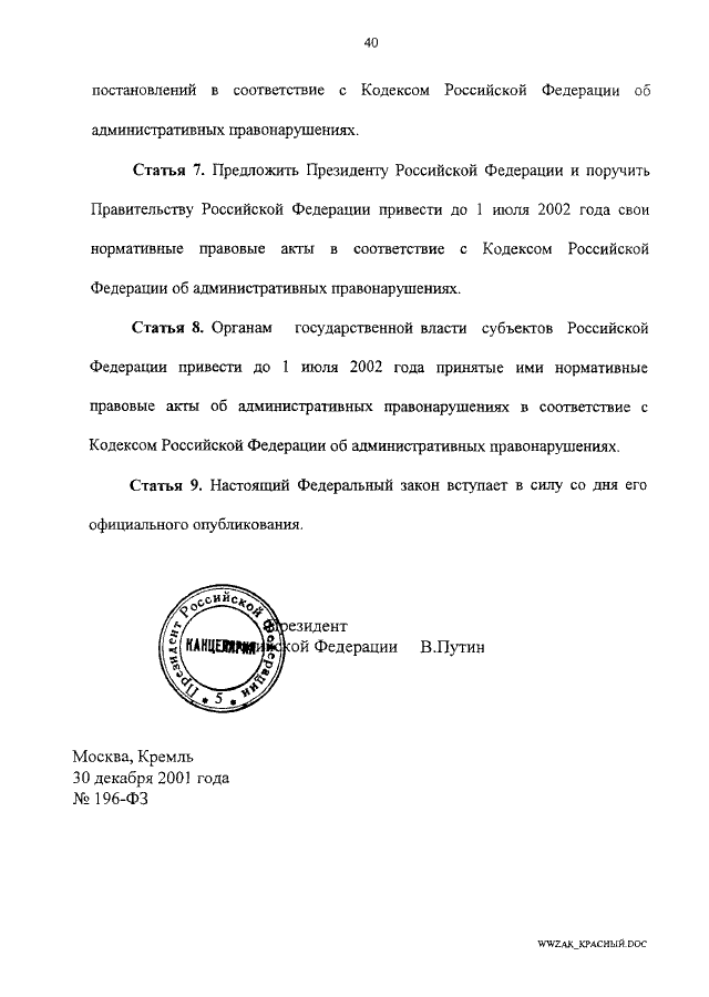 ФЕДЕРАЛЬНЫЙ ЗАКОН от 30.12.2001 N 196-ФЗ