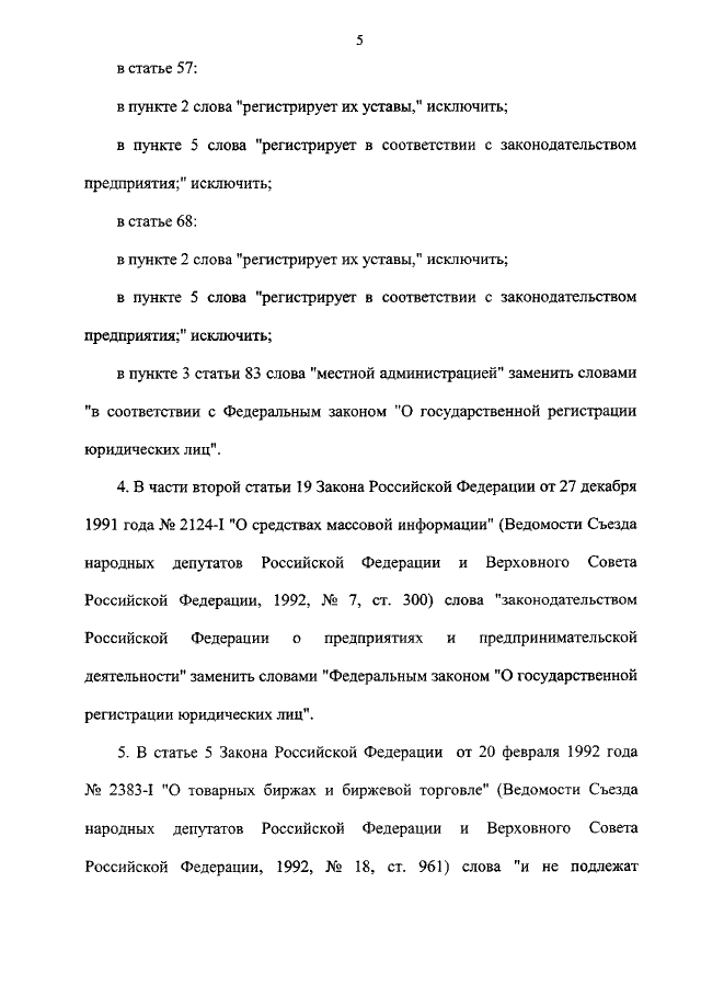 "О ПРИВЕДЕНИИ ЗАКОНОДАТЕЛЬНЫХ АКТОВ В СООТВЕТСТВИЕ С ФЕДЕРАЛЬНЫМ ЗАКОНОМ "О ГОСУДАРСТВЕННОЙ РЕГИСТРАЦИИ ЮРИДИЧЕСКИХ ЛИЦ"
