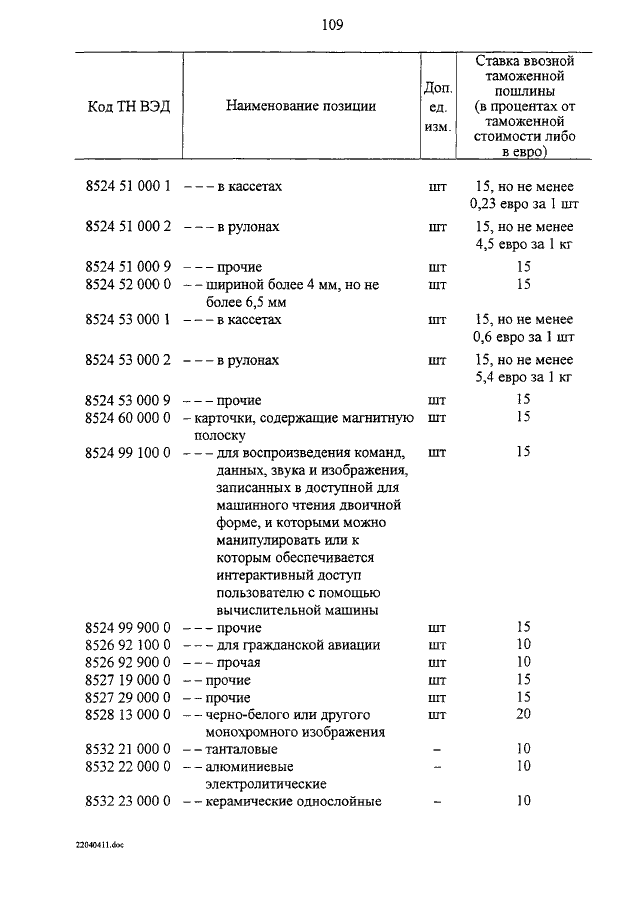"О ВНЕСЕНИИ ИЗМЕНЕНИЙ В ТАМОЖЕННЫЙ ТАРИФ РОССИЙСКОЙ ФЕДЕРАЦИИ"