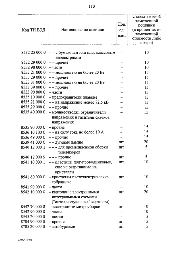 "О ВНЕСЕНИИ ИЗМЕНЕНИЙ В ТАМОЖЕННЫЙ ТАРИФ РОССИЙСКОЙ ФЕДЕРАЦИИ"